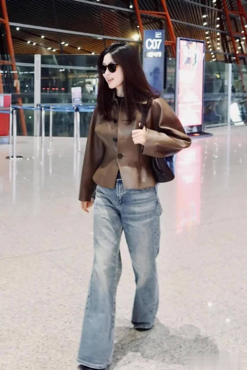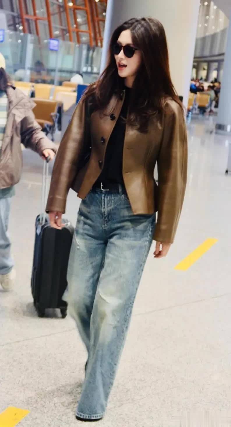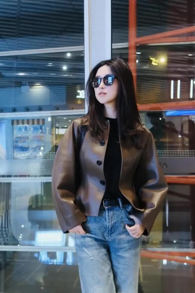 不仅女明星,普通人平日逛街买皮衣时,也会很在意版型。原因很简单,每个人喜欢的款式不同,有的人偏爱中长款皮衣,而有的时尚达人特别想显腿长,自然更倾向于短款外套。皮衣外套在门襟设计上和当下常穿的羽绒服一样,有扣子、拉链两种选择。朱珠身上这件采用了圆形纽扣,看上去共有四颗扣子,但只扣上了腰部的一粒。此举目的很容易猜到,瞬间就能展现出穿着者的小蛮腰。